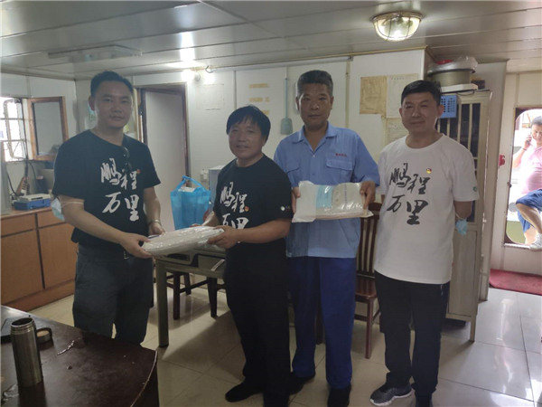 最后,党员们又来到了油轮码头,慰问了在高温中奋战的船员同志,并给大家送去了防暑用品。