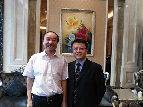 董事长傅炳荣和虹口区委常委、副区长徐彬合影