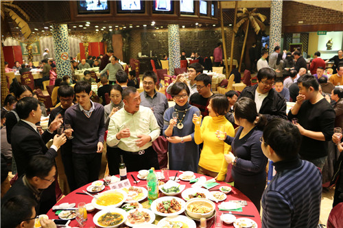 总结和展望之后,公司为员工准备了厚厚的红包和奖品,从现金红包的“普天同庆”到手机、笔记本电脑甚至金条的最高大奖,掀起了现场的阵阵高潮,而员工也自发准备了文娱游戏和表演来助兴晚宴。