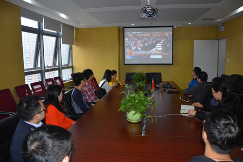 鹏盾电商党支部、东冉党支部党员们在会议室集中观看了开幕会直播,并认真聆听了习近平总书记代表第十八届中央委员会向大会作得题为《决胜全面建成小康社会,夺取新时代中国特色社会主义伟大胜利》的报告。浏河基地的同志们也同步收看了直播。