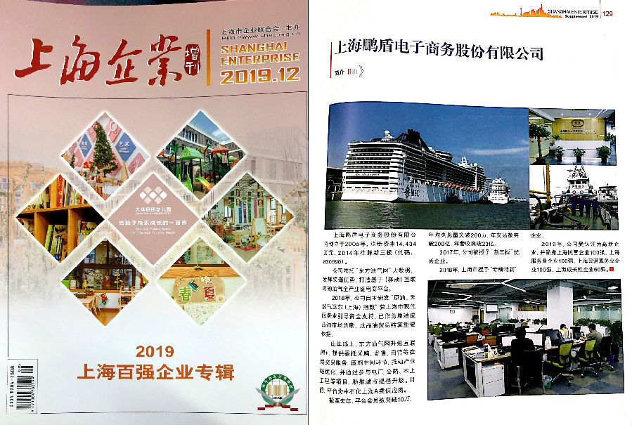 华东地区优秀期刊、面向企业和企业家,由上海市经济委员会监管、上海企业联合会主办的《上海企业》(月刊)杂志于2019年12月期刊登了上海鹏盾电子商务股份有限公司的介绍。介绍全文如下:
